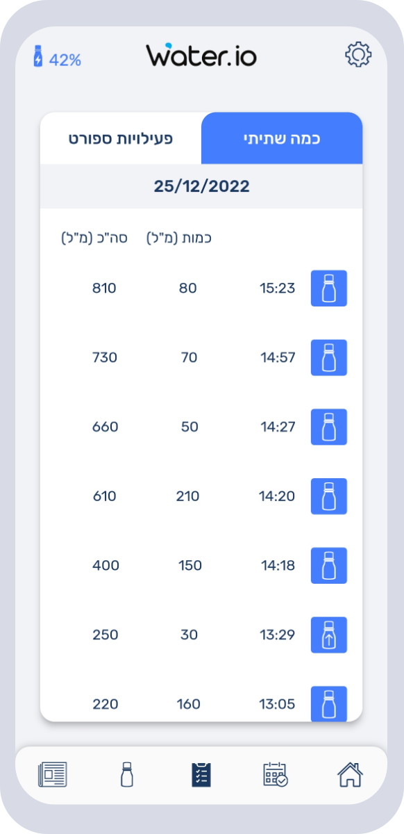 מסנכרן את נתוני שתיית המים לאפליקציה ייעודית